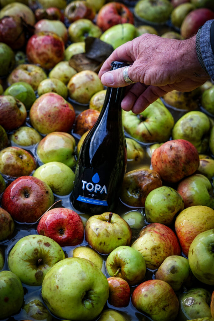 TOPA n’est ni un sagardo traditionnel, ni un cidre industriel. C’est un cidre de dégustation, à la fois moderne et profondément ancré dans la culture basque, où la nature s’exprime librement à travers le fruit. Son caractère brut et sa fraîcheur en bouche reflètent une vision simple : faire moins, mais faire juste.